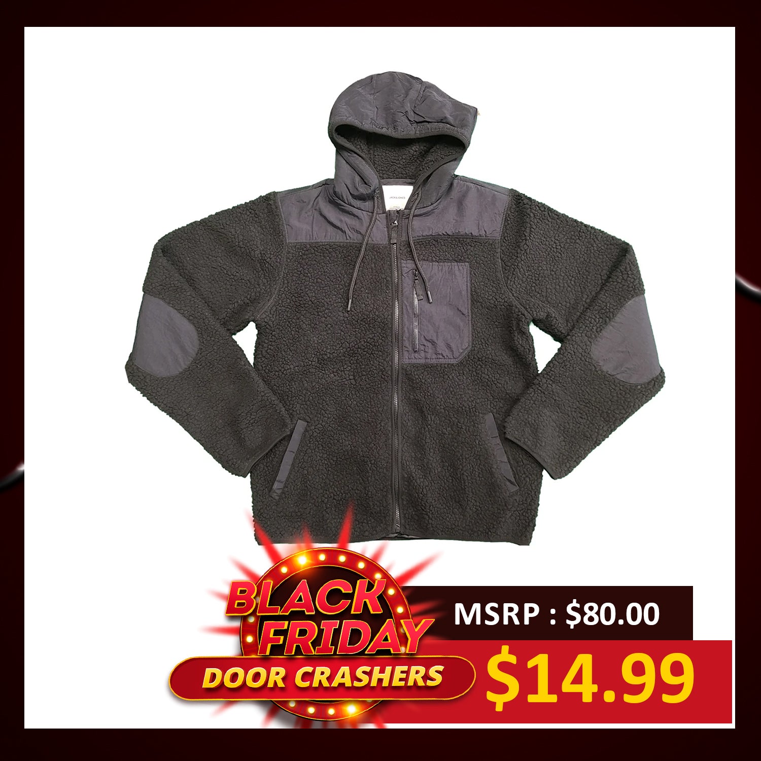 Jack & Jones Men's Black Jacket Authentic Sherpa Teddy Fleece (S01)