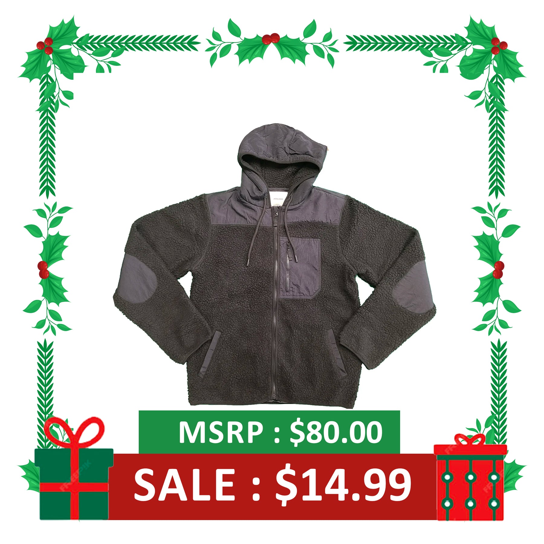 Jack & Jones Men's Black Jacket Authentic Sherpa Teddy Fleece (S01)