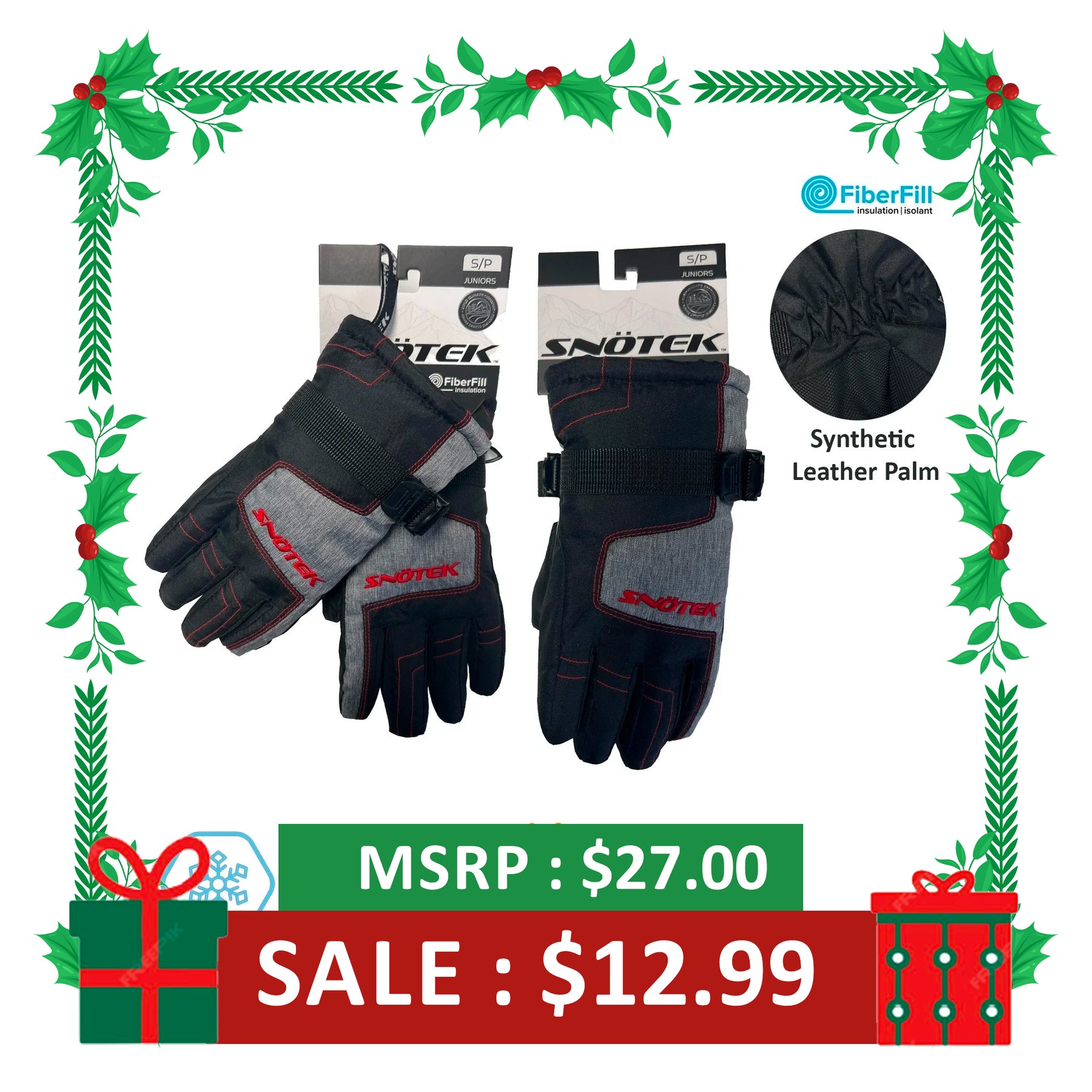 Snotek Junior's Black Grey Stitched Performance Winter Ski Gloves ST318 (S01)