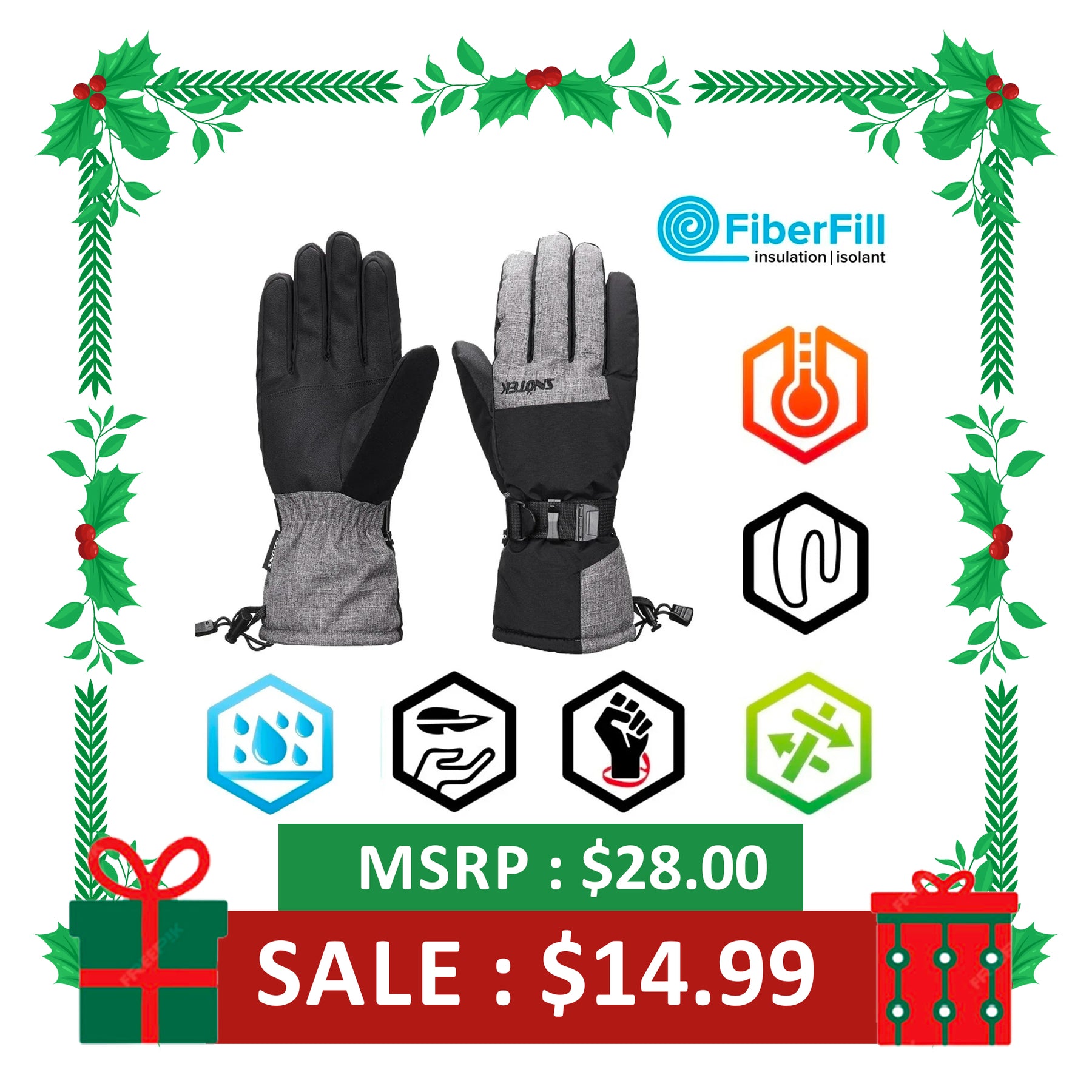 Snotek Men's Black & Grey Performance Ski Gloves Black Logo ST219 (S06)