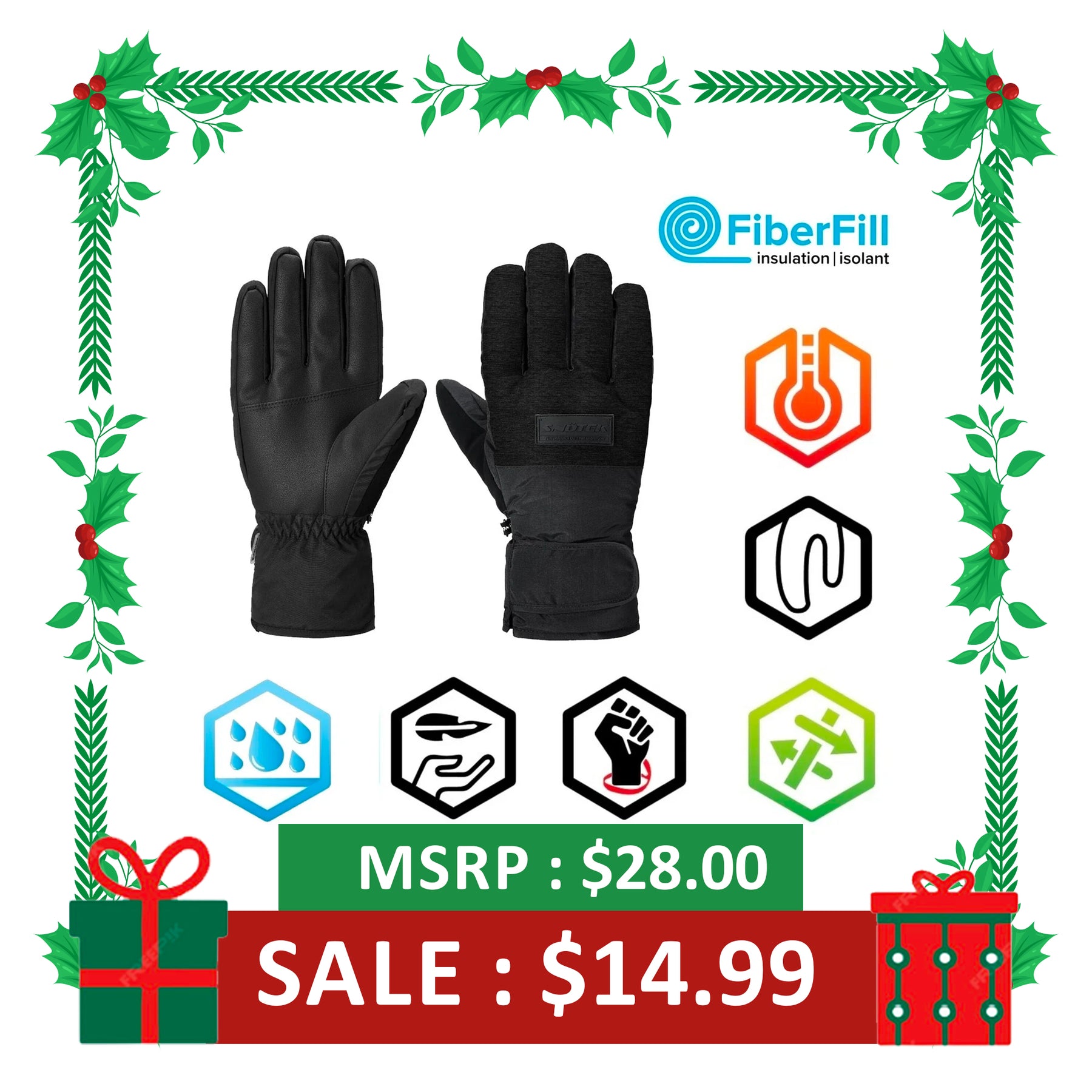 Snotek Men's Black Performance Ski Gloves Patched Label ST272 (S01)