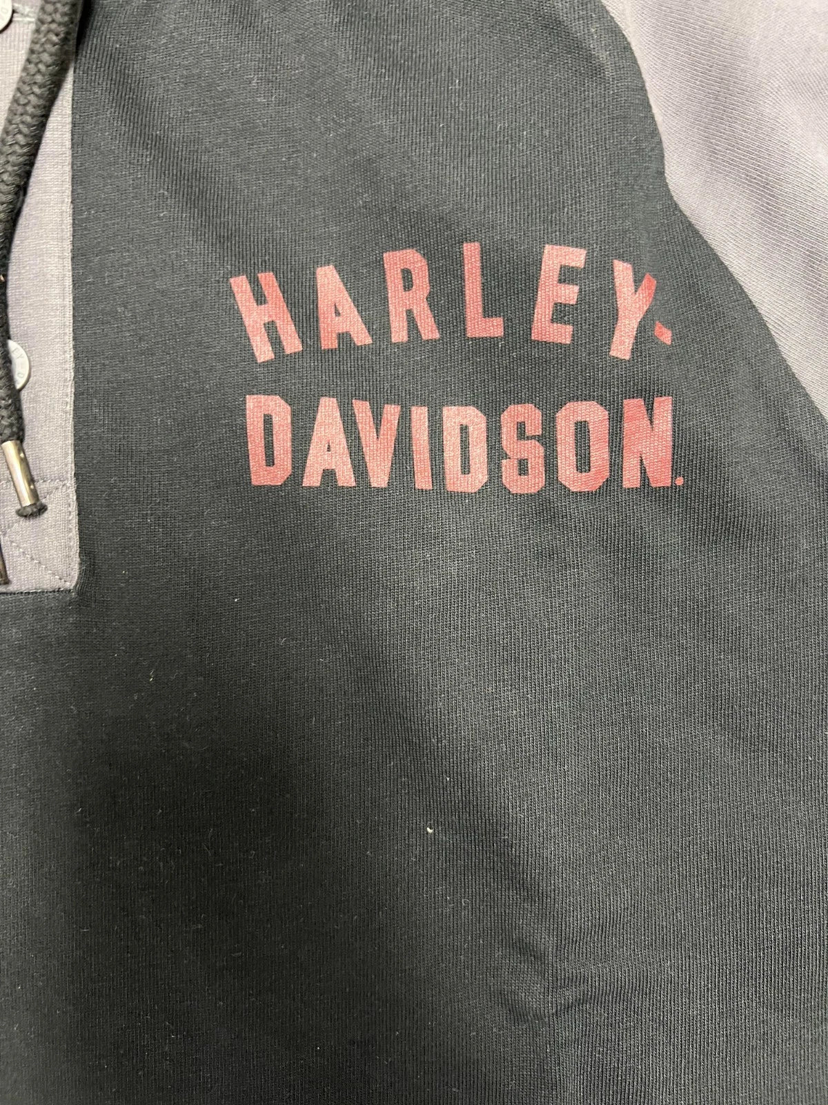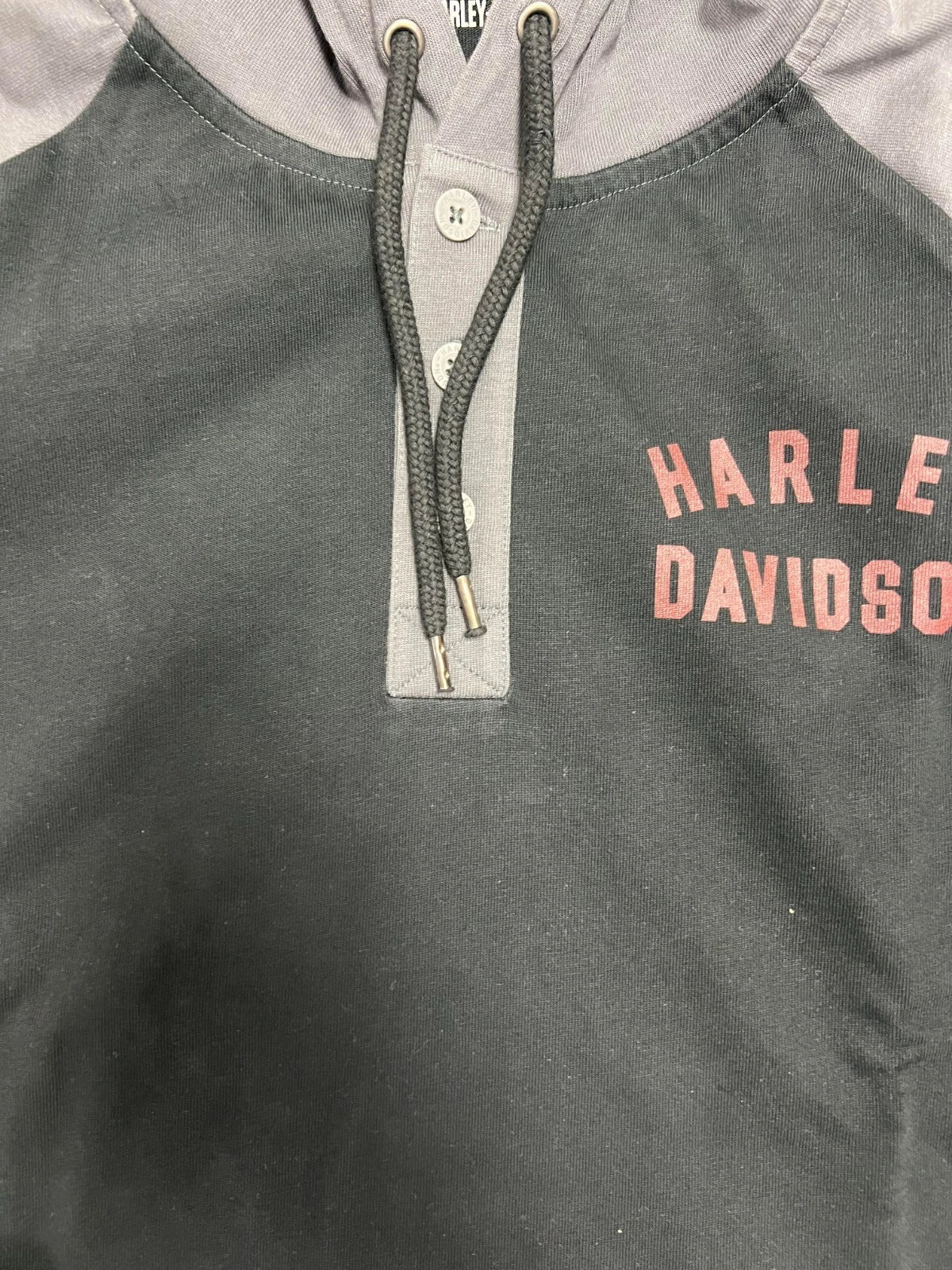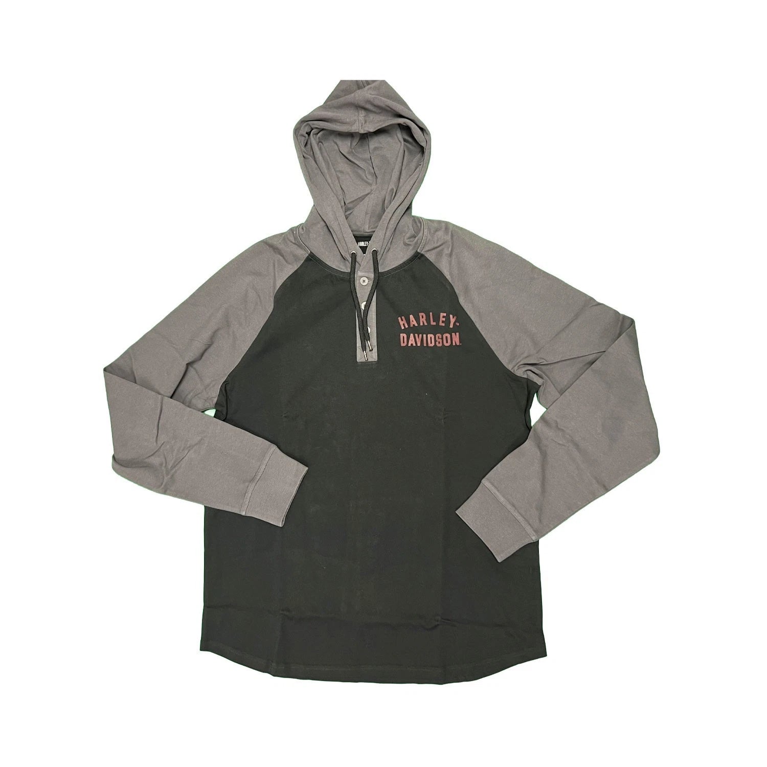 Harley-Davidson Men's Black Hoodie Staple Raglan Henley Drawstring Hood (S122)