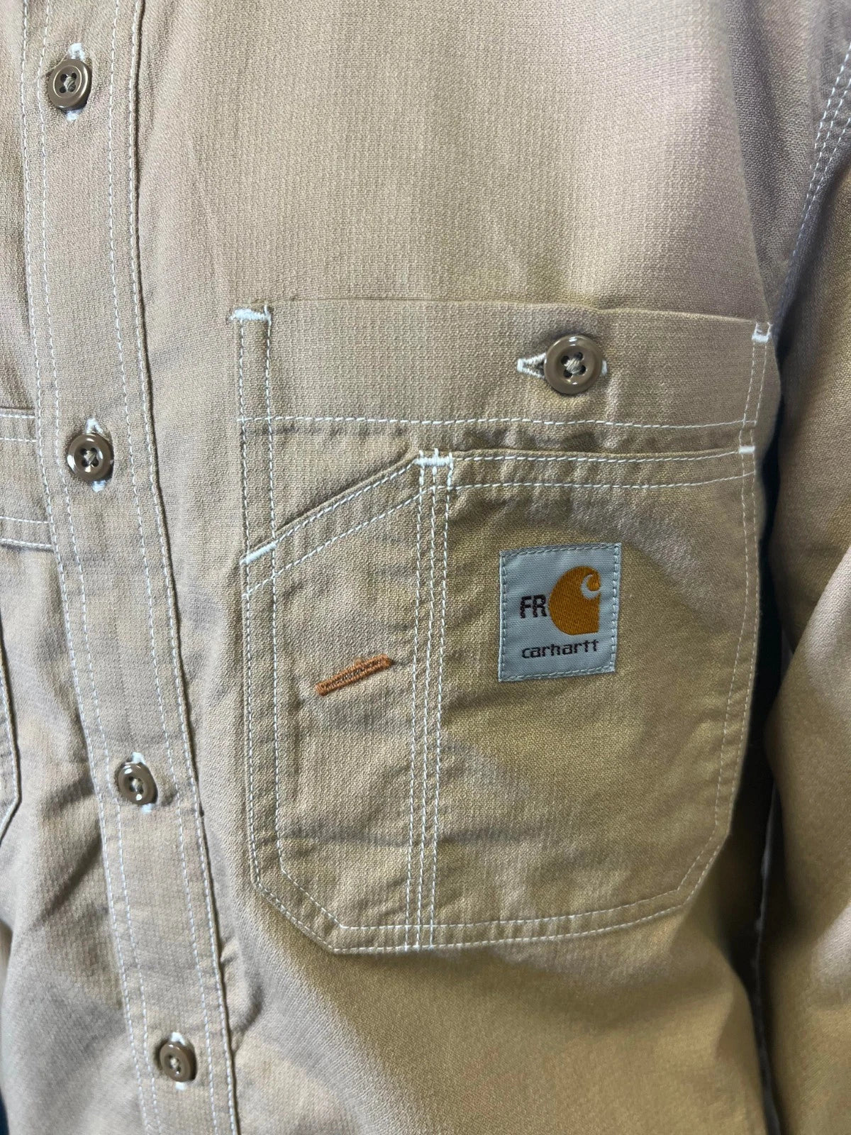 Carhartt FR Men's Dark Khaki Shirt Flame Resistant Long Sleeve Lightweight (S04