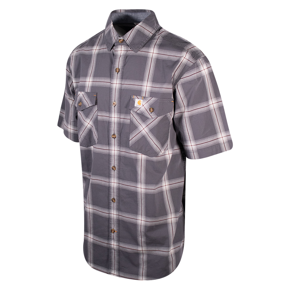 Carhartt Men's Grey Maroon White Lightweight Relaxed Fit S/S Woven Shirt (S12)