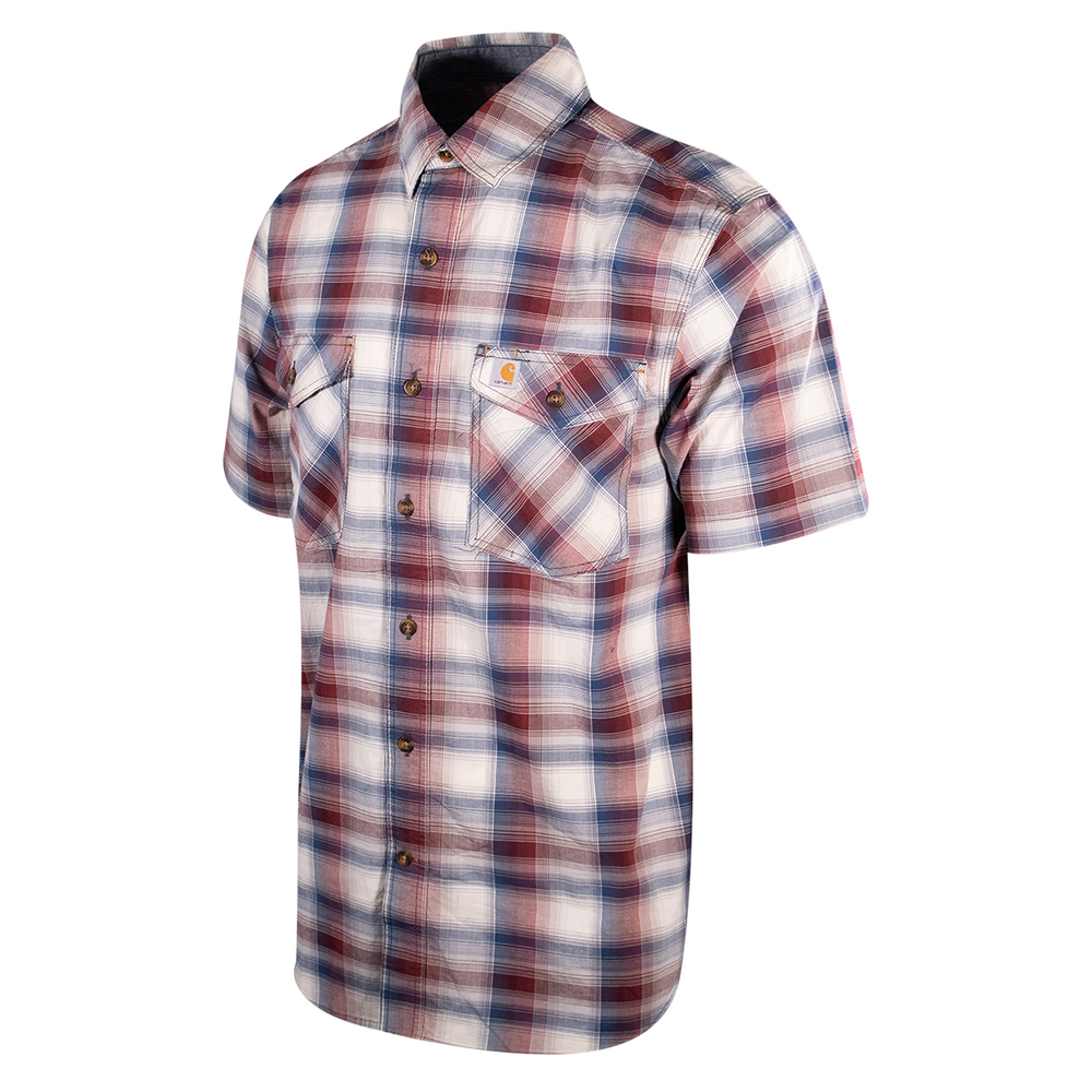 Carhartt Men's Maroon Off White Blue Relaxed Fit S/S Woven Shirt (S14)