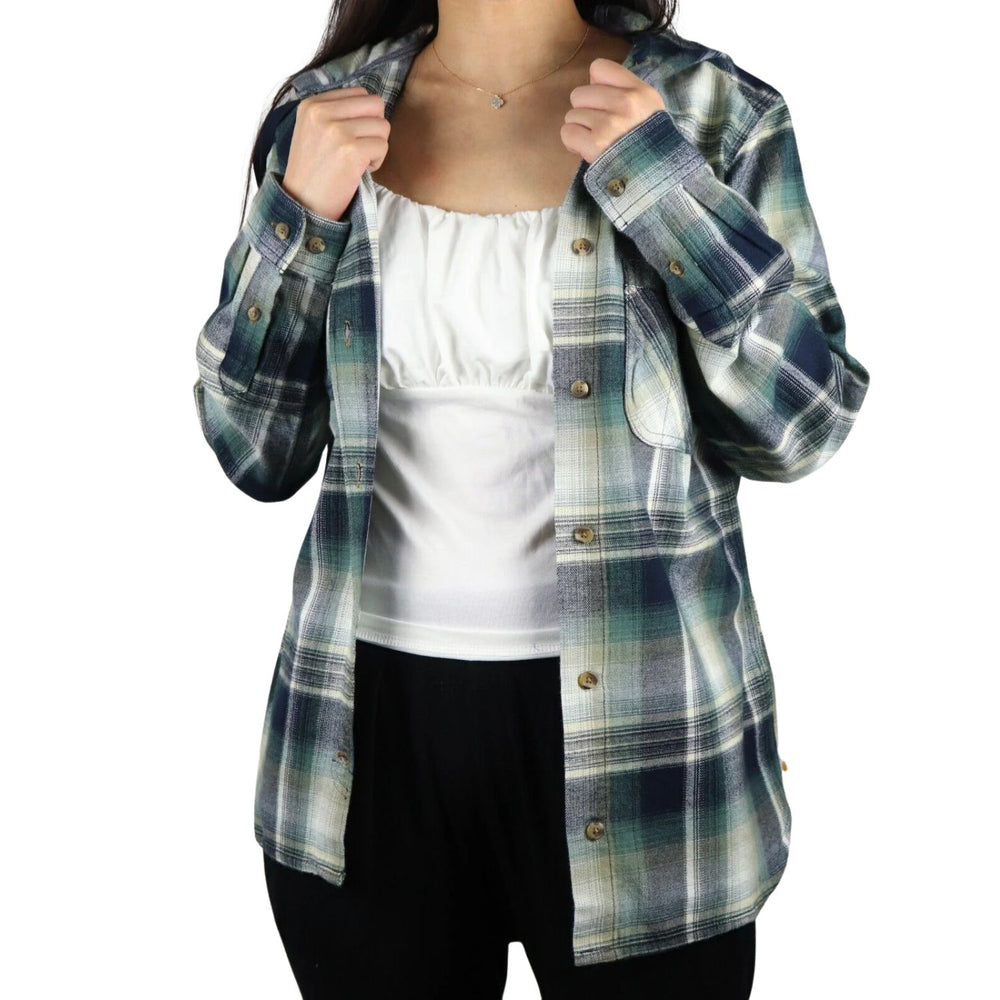 Carhartt Women's Forrest Green Navy Cream Plaid Hooded L/S Woven Shirt