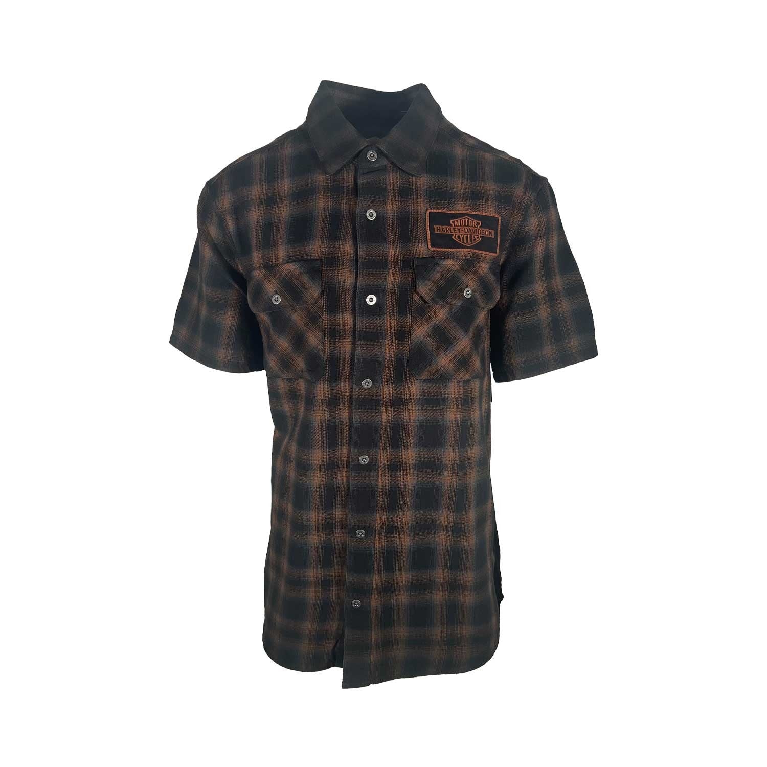 Harley-Davidson Men's Black & Amber Brown Shirt Bar & Shield Plaid S/S (S71)