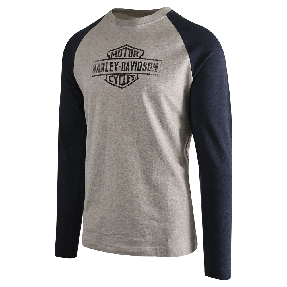 HD Branded Men's T-Shirt Blue Heather Grey Oil Can Bar & Shield Raglan
